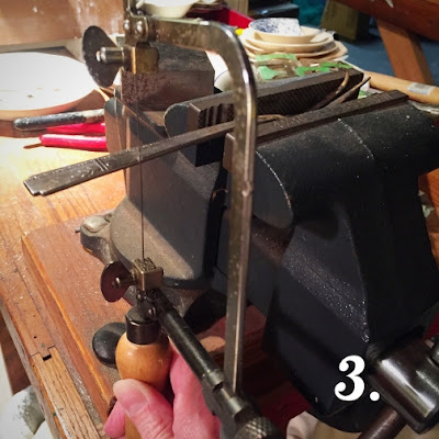 3. Use your jewelry saw to cut off the end of your spoon or fork. Hold the saw vertically and saw in an up and down motion. The size of saw blade isn't super important here, as we are simply cutting the end off of the spoon.