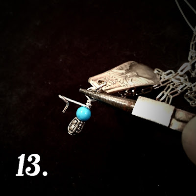 11. Thread the end of the head pin through the jump ring that you used to attach the chain to your spoon pendant.
