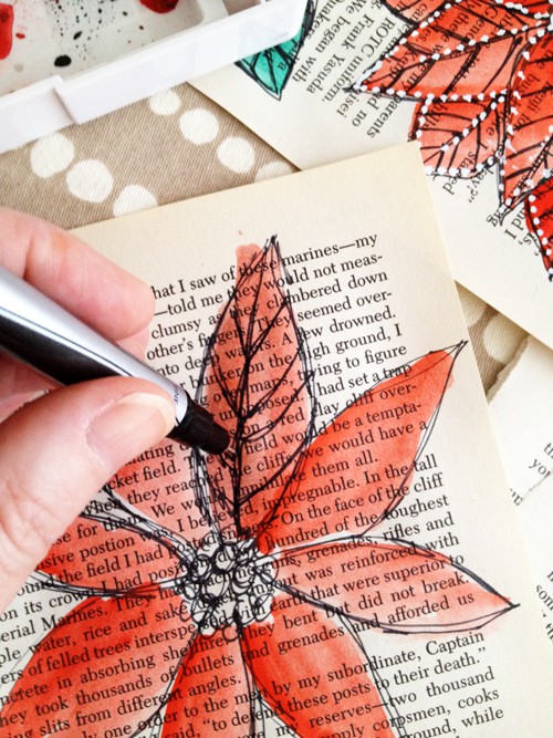 poinsettia book page wreath how to